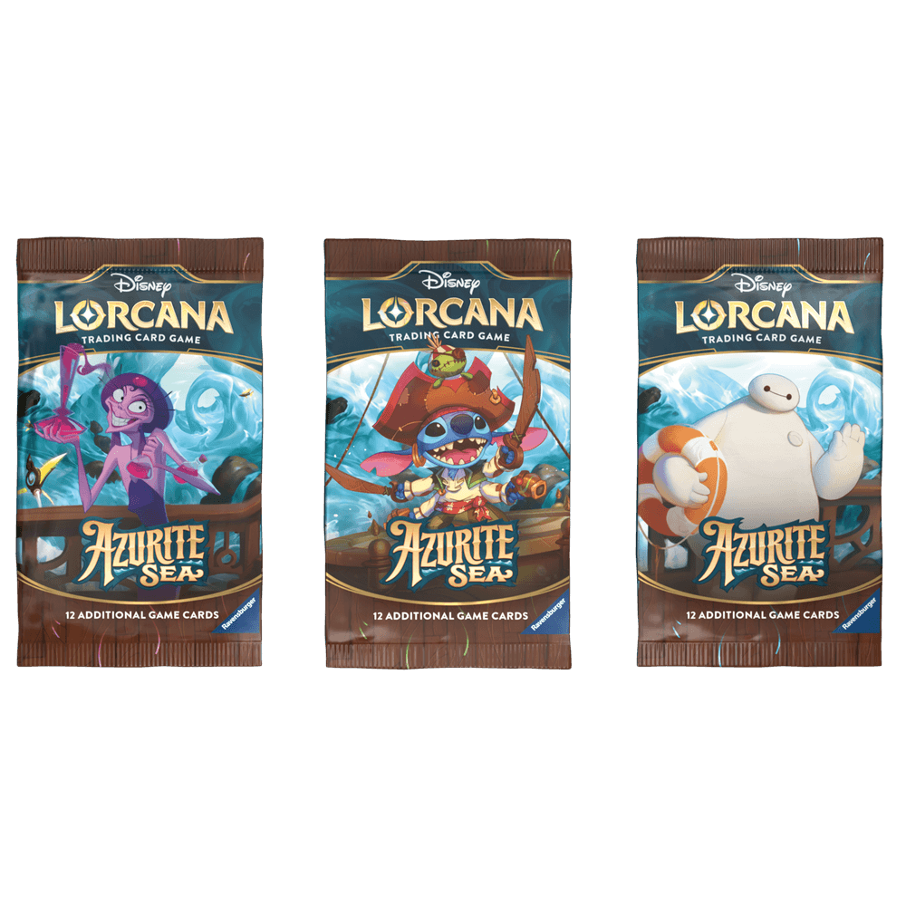 Cada pacote consiste em 12 cartas com uma mistura de cartas comuns, incomuns, raras, super raras e lendárias, incluindo uma carta foil aleatória - cada carta em Disney Lorcana