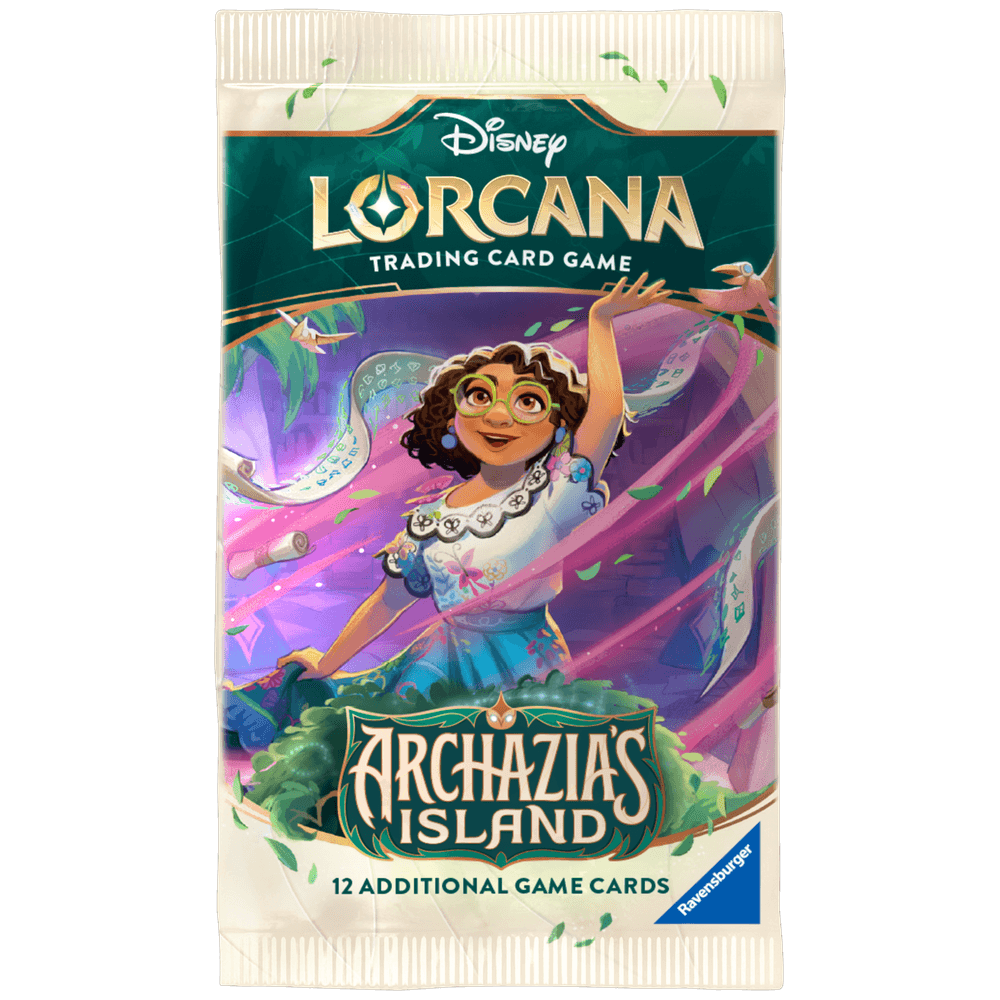 Cada pacote consiste em 12 cartas com uma mistura de cartas comuns, incomuns, raras, super raras e lendárias, incluindo uma carta foil aleatória - cada carta em Disney Lorcana