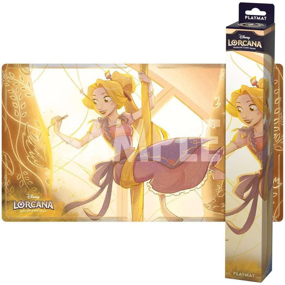 OBRAS DE ARTE IMPRESSIONANTES: Mergulhe no mundo maravilhoso de Disney Lorcana com a arte original e vívida de Rapunzel - Artista Talentosa de Aubrey Archer apresentada neste tapete de jogo.