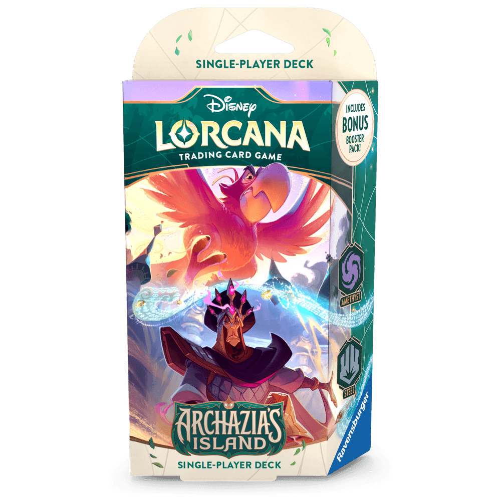 Deck pronto para jogar com 60 cartas: Single-player deck “Archazia's Island” do Disney Lorcana TCG, ideal para novos jogadores e colecionadores.