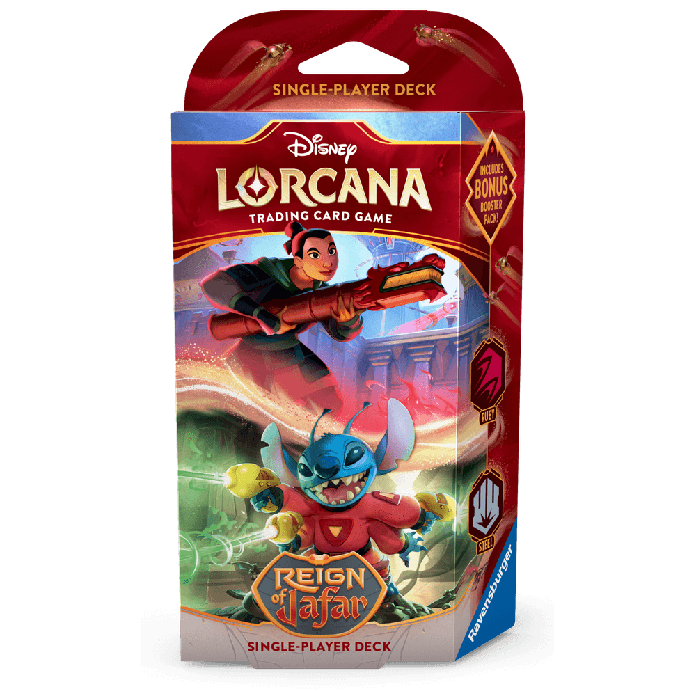 Deck pronto para jogar com 60 cartas: Single-player deck “Reign of Jafar” do Disney Lorcana TCG, ideal para novos jogadores e colecionadores.